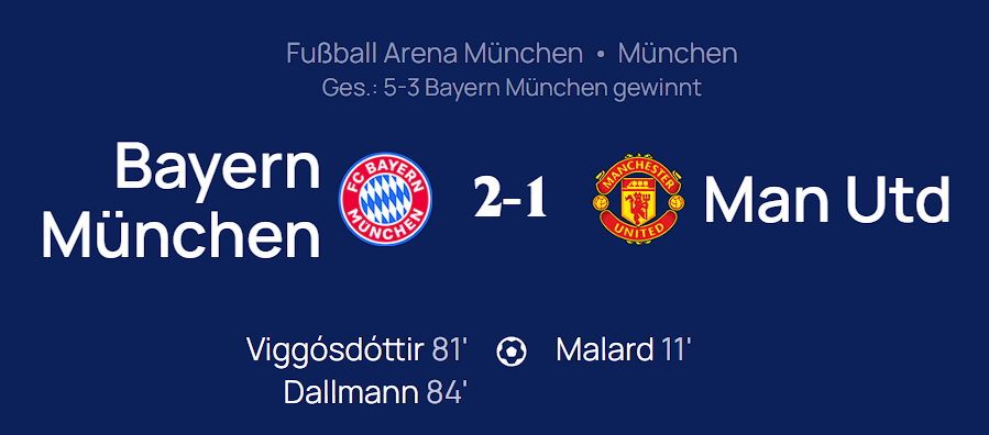 Am Ende aber stand die glückliche Erlösung: Dank eines 2:1 (0:1)-Heimspielsieges vor 25.000 Fans in der Allianz Arena, und dem 3:2-Erfolg aus dem Hinspiel in Manchester, ziehen die Münchnerinnen ins Halbfinale der Champions League ein.