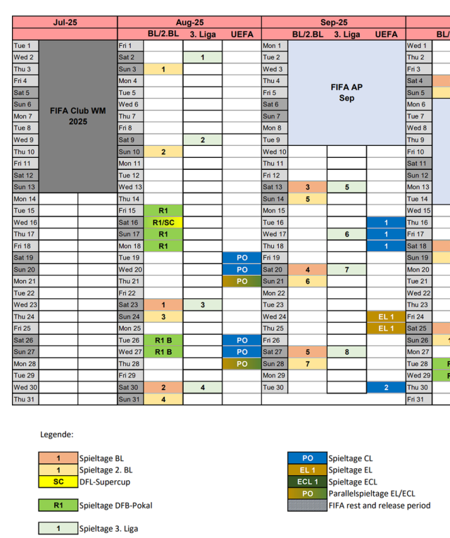 Das Präsidium des Deutschen Fußball-Bundes (DFB) hat auf seiner heutigen Sitzung den Rahmenterminkalender der Männer für die Saison