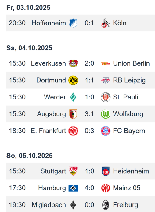 Bundesliga - Spieltag 6 (3. - 5. 10. 2025) :