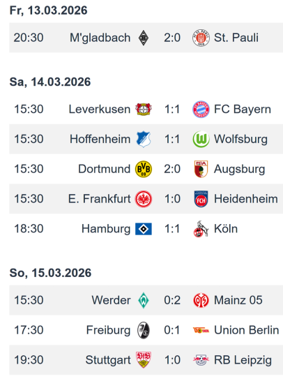 Bundesliga Spieltag 26 (13. - 15. März 2026)