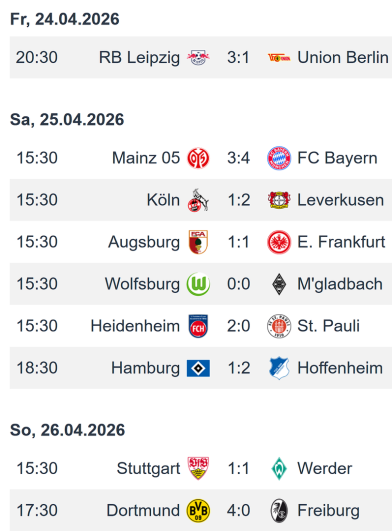Alle Ergebnisse des BL-Spieltags 31 im Überblick :