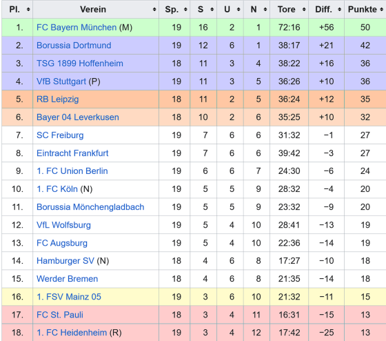 Stand nach dem 19. Spieltag ( 23. bis 25. 01. 2026 )