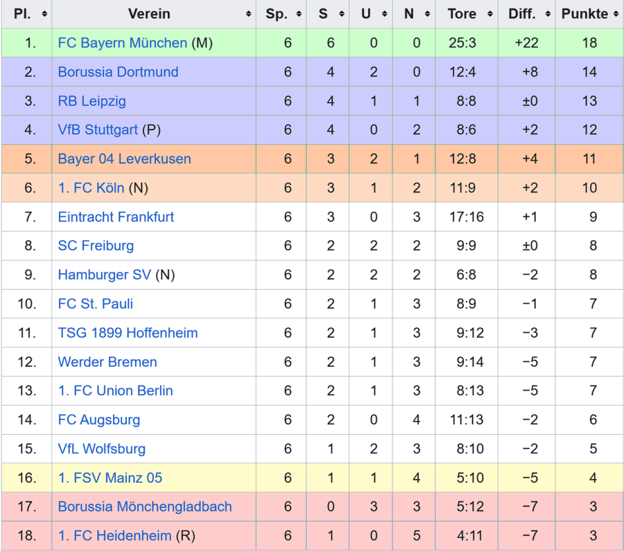 Stand nach dem 6. Spieltag ( 3. - 5. 10. 2025 )