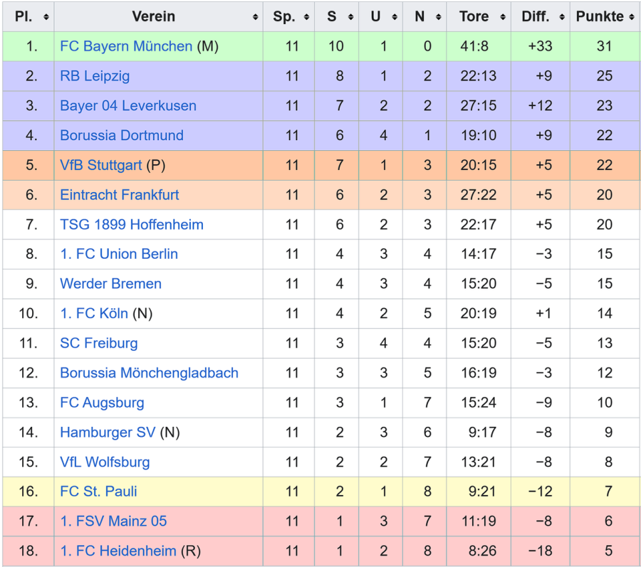 Stand nach dem 11. Spieltag ( 21. bis 23. 11. 2025 )