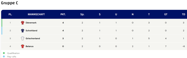 und liegt nach dem Sieg über Nordirland nur auf Rang 3.
