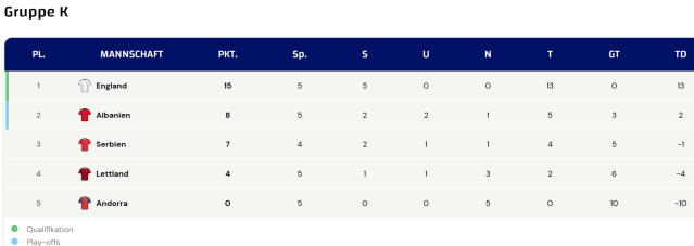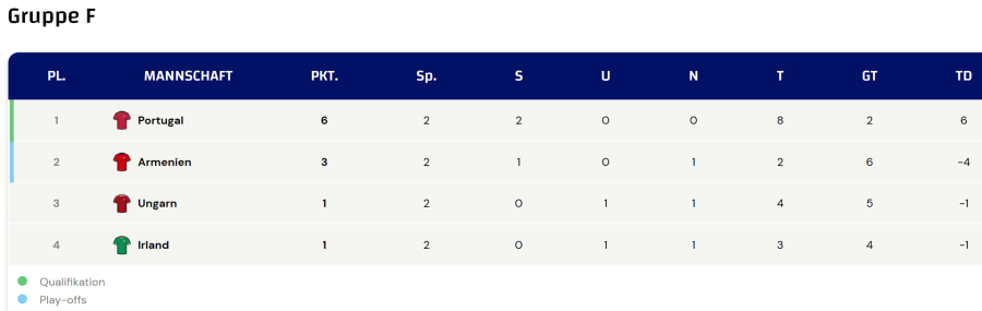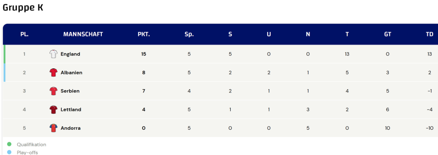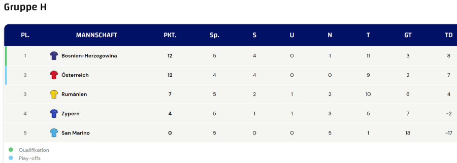 Die nächsten Spiele sind für Mitte Oktober angesetzt, ehe im November die Quali abgeschlossen wird.